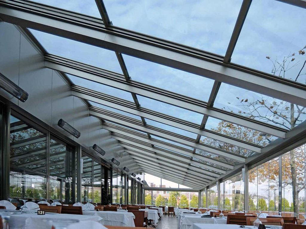 Güneşi kırma ve ısı kayıplarında etkili olabilmek için UV ışınlarını %60 seviyede filtre edebilen özellikte cam seçenekleri uygulanabilmektedir. Tam olarak güneş kontrolü sağlamak için sistem içerisine yatay olarak çalışabilen çatı içinden veya dıştan motorlu tente sistemleri ilave edilmektedir. Bu sayede mekana güneşli havalarda % 100 sorunsuz olarak kullanabilme özelliği kazandırılmaktadır. Su tahliye sistemi standart olarak bulunmaktadır. Açılır cam çatı sistemleri kullanımı son derece kolay, yürüyen cam çatı özelliğinde güvenli sistemlerdir. Olumsuz hava şartlarında dahi kullanılabilen dış mekanlar yaratmaktadır.